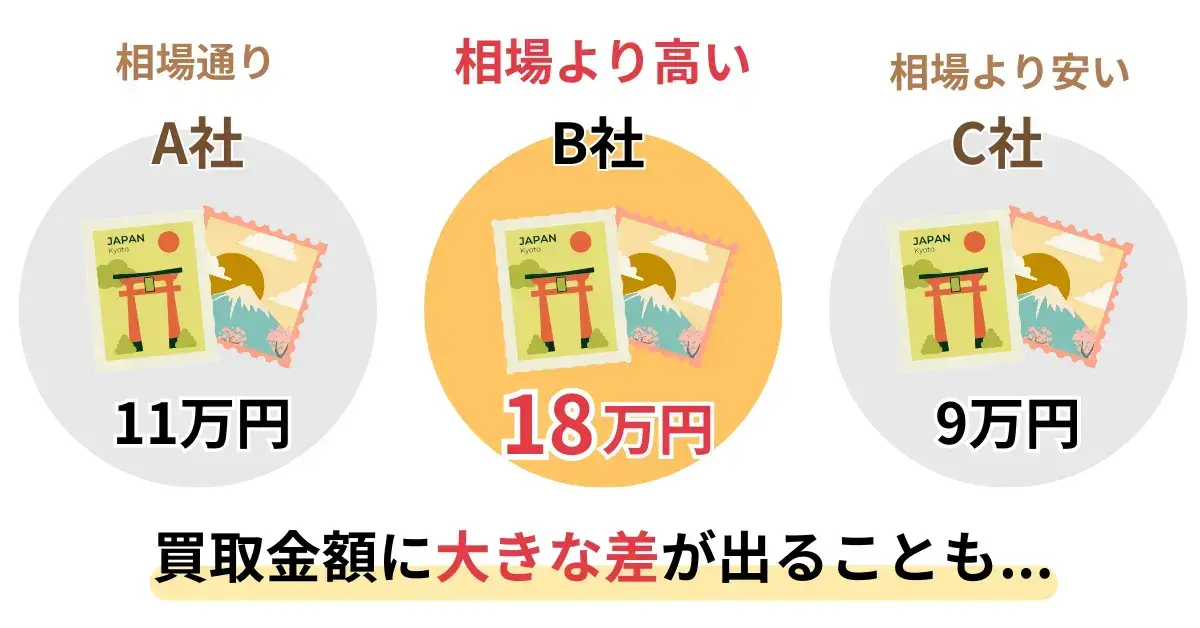 実は、切手の買取金額は、店によって大きく差が出ます。