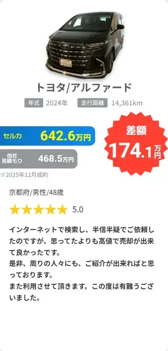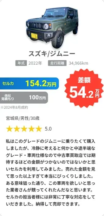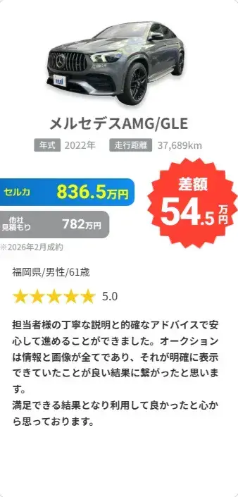 ※3 セルカで売却されたお客様の、セルカ売却価格と他社査定額の差額平均額を算出(セルカ実施アンケートより2022年4月~2024年9月 回答1,533件)